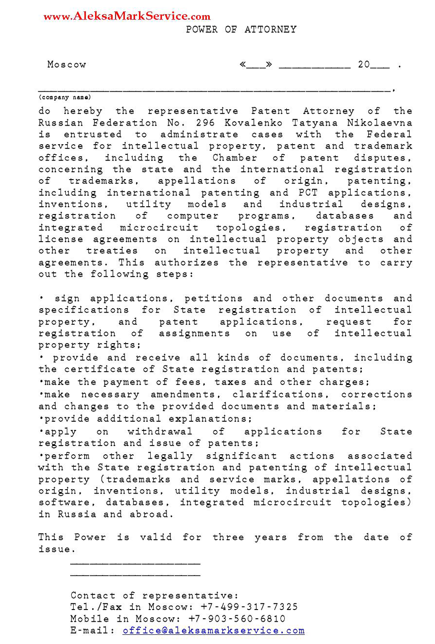 Special Offer 1:Trademark check (TM search) on base of the registered trade marks of the Russian Federation, including the international registration with indication of Russia. Drafting of the report from the patent attorney, based on the results of search, with prospects of registration and recommendations. Term - 1 day. Special Offer 2:Preparing a material and filing an application for trademark registration in Russian Patent Office. Receipt of filing certificate and transfer certificate with the priority of the trademark to the customer. Period of performance - one day. Monitoring of the application and examination of the trademark. Support. Contacts:AleksaMarkService, Ltd.Address: Moscow, Nikolskaya st., 4/5 Phone/Fax in Moscow: +7 (495) 500-65-16 Email: ![]() |